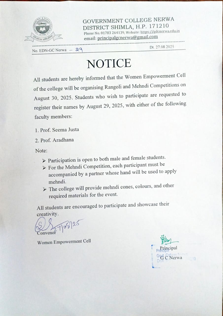 | 20 | Rangoli and Mehndi Competitions on 30.08.2025 | 27 August 2025 | Read Full » |