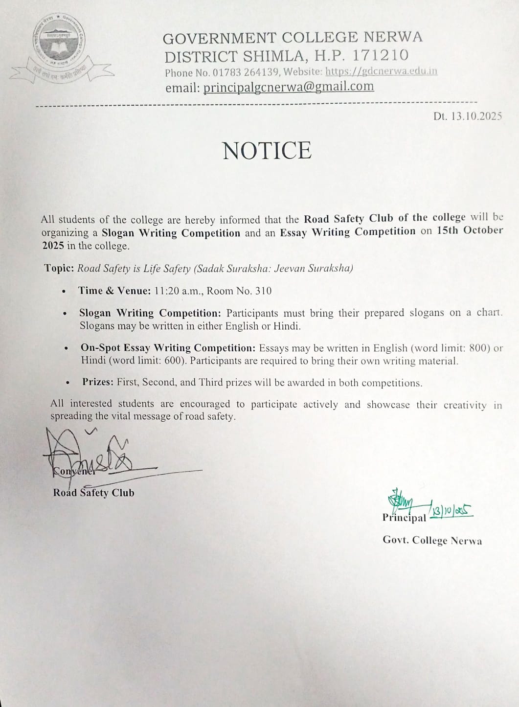 | 13 | Regarding Essay Writing and Slogan Writing Competitions (Road Safety Club) | 13 October 2025 | Read Full » |