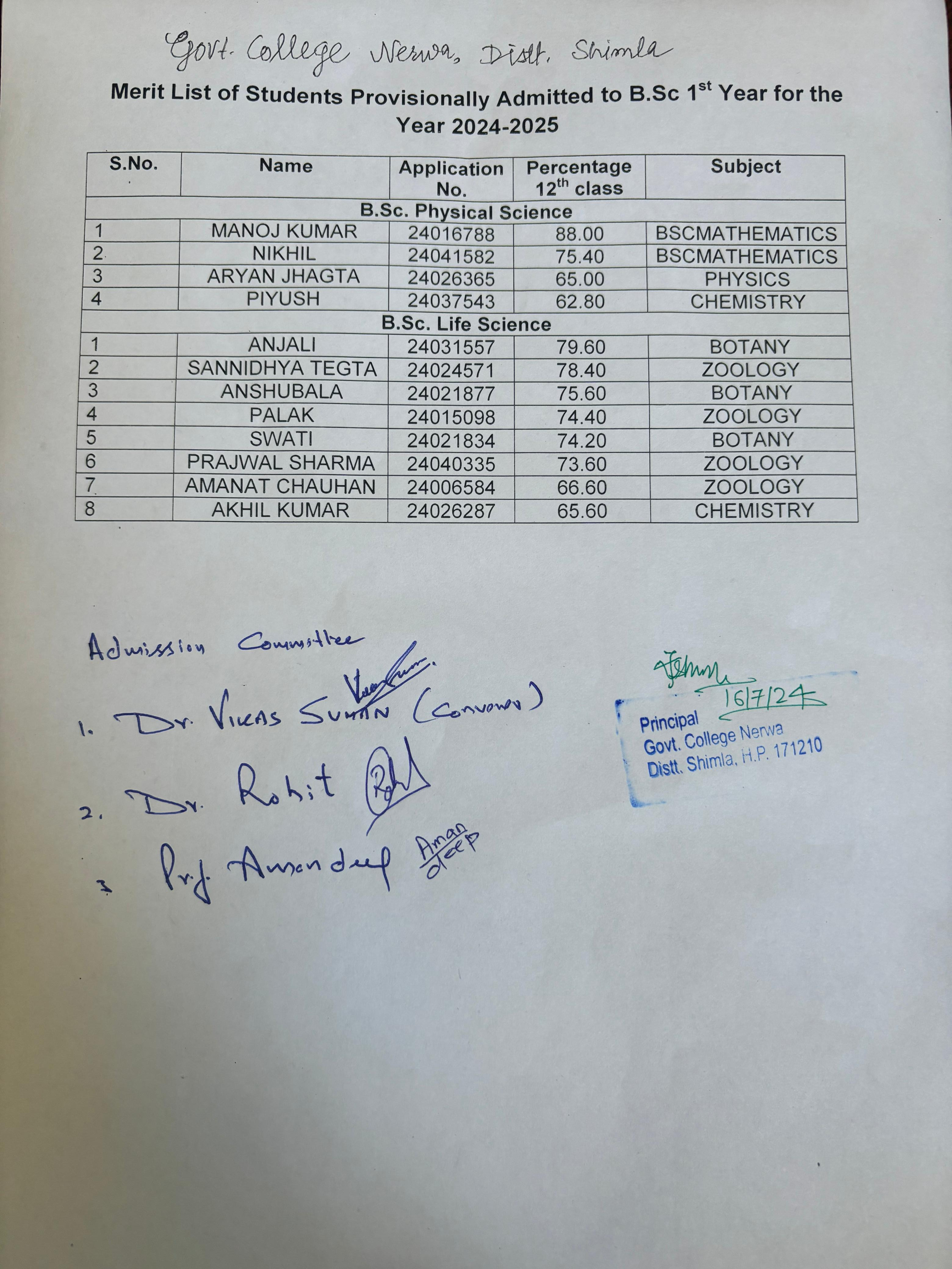 | 41 | Merit List BSC 1st Year | 16 July 2024 | Read Full » |