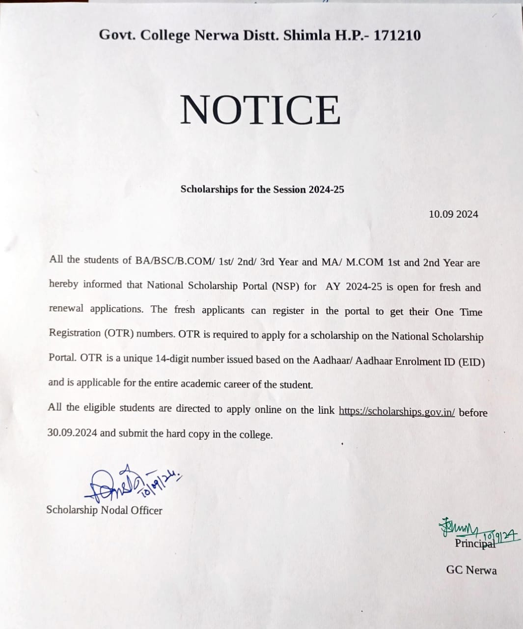 | 16 | Regarding National Scholarship Scheme | 29 September 2025 | Read Full » |