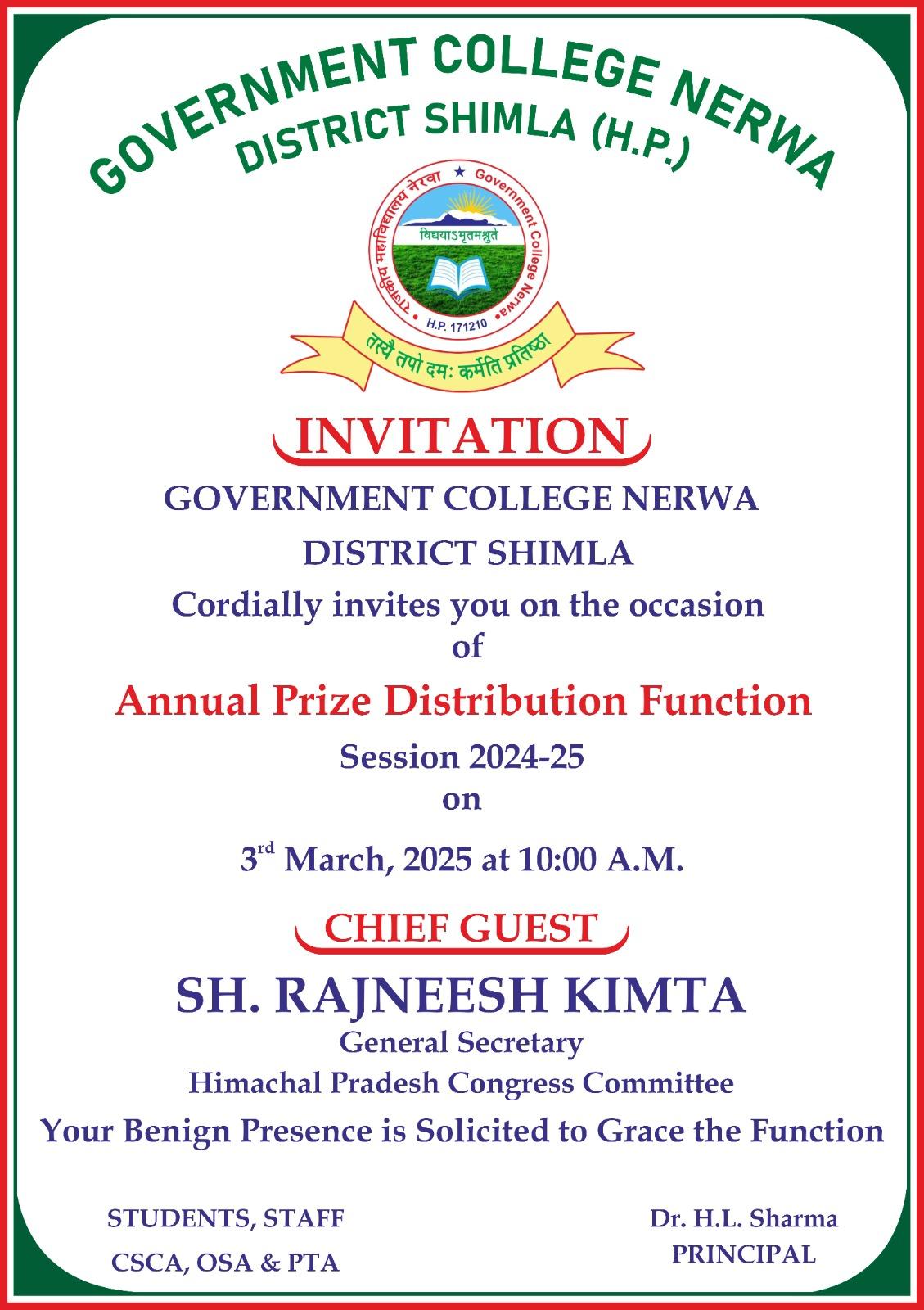 | 29 | Invitation Card: Annual Prize Distribution Function 2024-25 | 26 February 2025 | Read Full » |